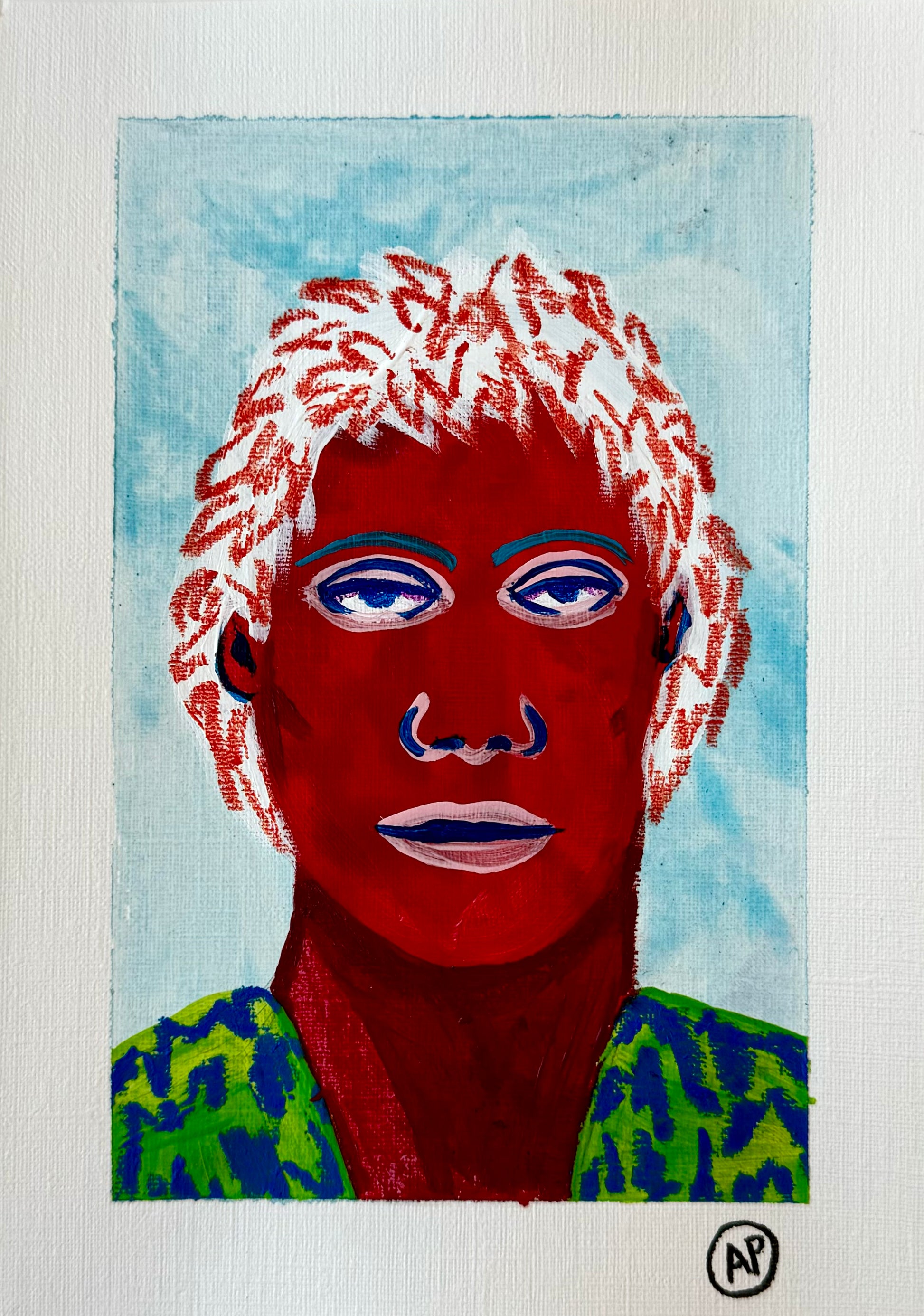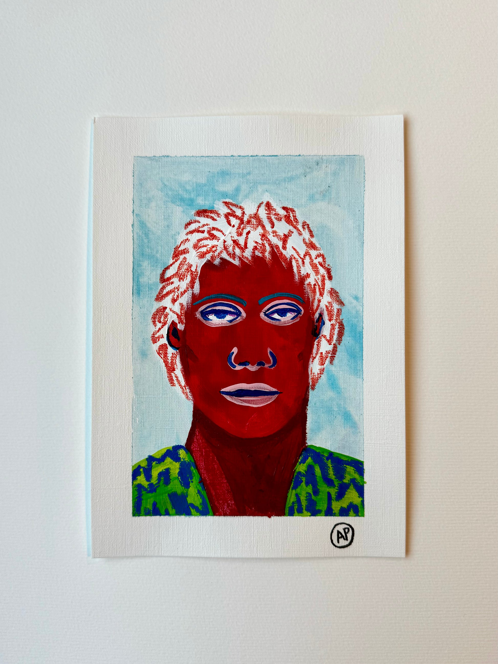 Bold, colorful, and full of personality, this A5 original painting brings a unique touch to any space. Hand-painted on high-quality paper, it combines vivid colors with a modern, stylized portrait design, creating a visually striking piece that stands out. Each portrait features playful contrasts and intricate patterns, capturing a sense of individuality and artistic flair.