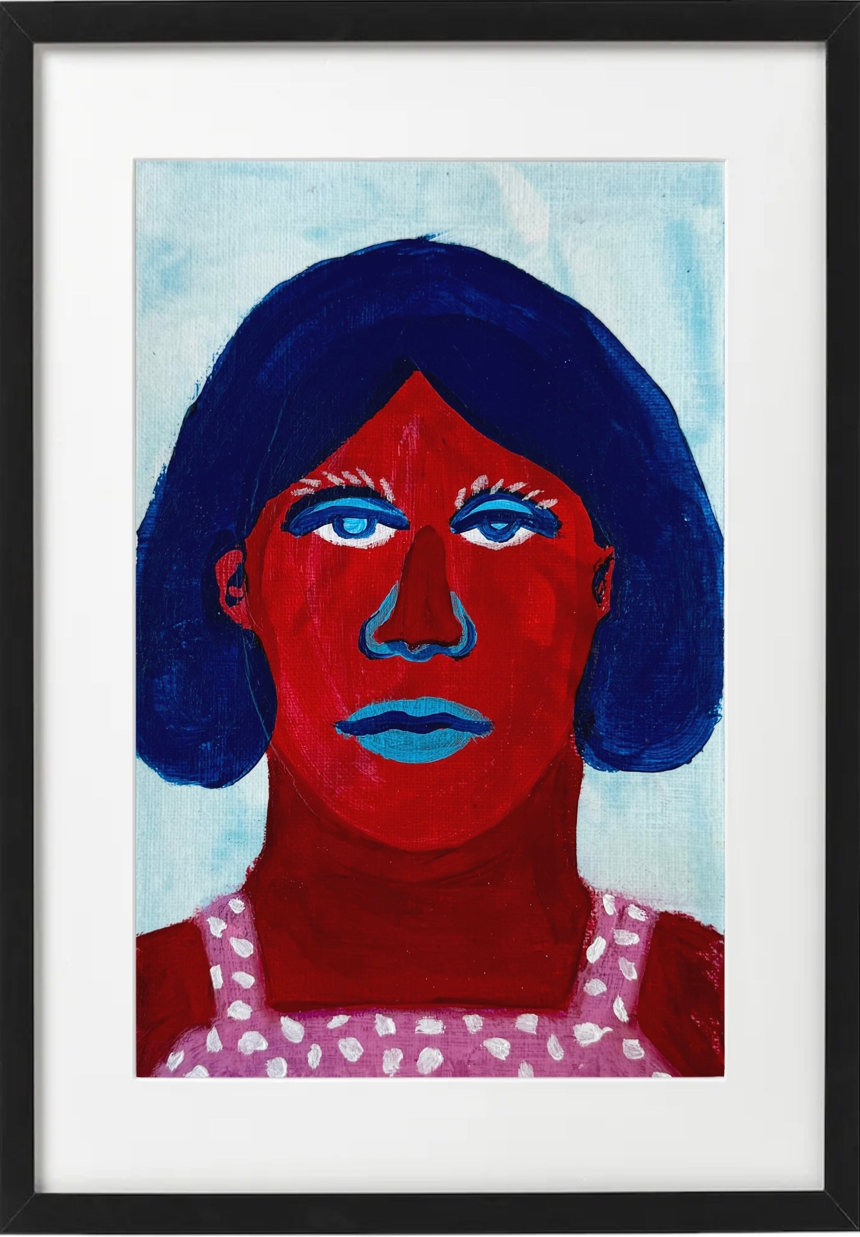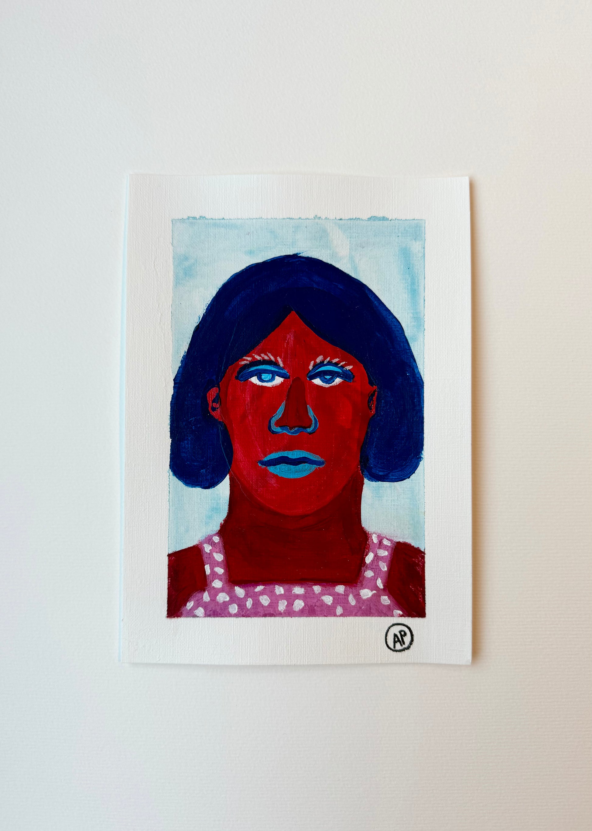 Bold, colorful, and full of personality, this A5 original painting brings a unique touch to any space. Hand-painted on high-quality paper, it combines vivid colors with a modern, stylized portrait design, creating a visually striking piece that stands out. Each portrait features playful contrasts and intricate patterns, capturing a sense of individuality and artistic flair.